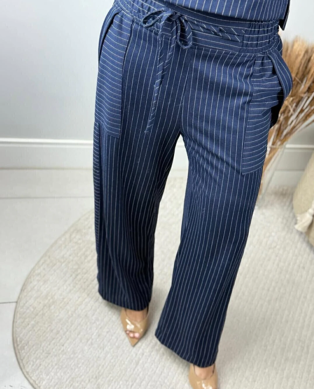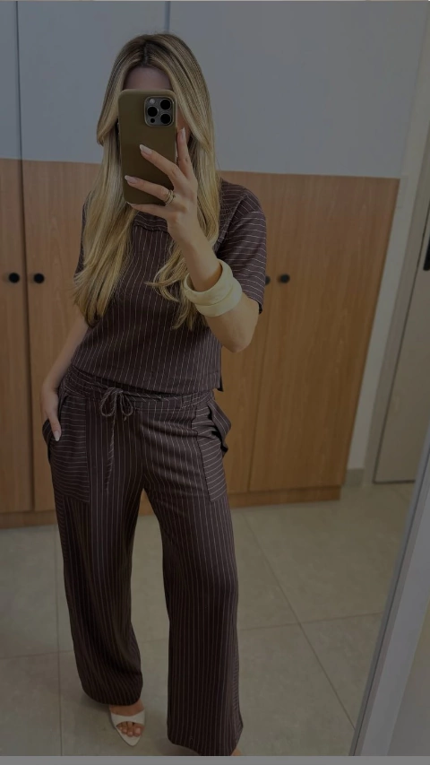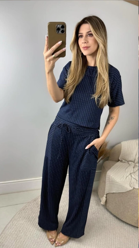 Conjunto risca de giz em moletinho Premium, com corte em alfaiataria