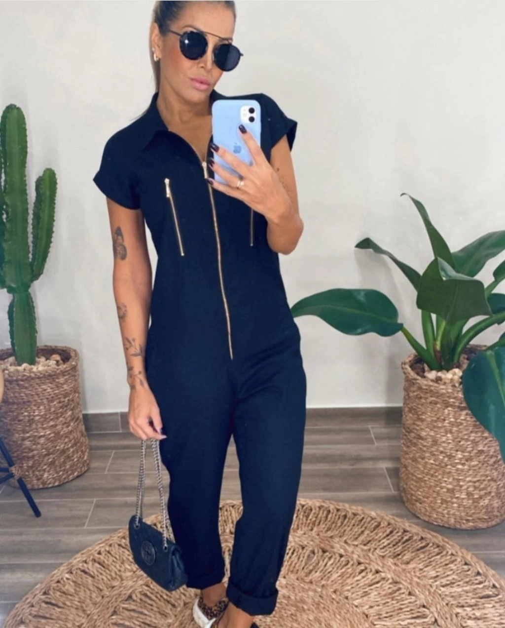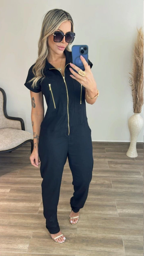 Macacão tecido viscolinho Barra italiana Zíper dourado