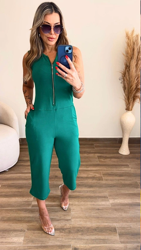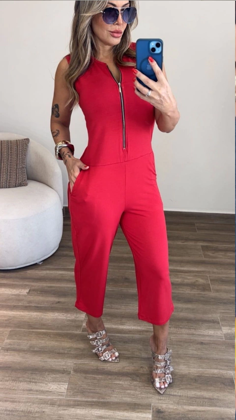 Macacão em moletinho fechamento em zíper bolsos trazeiros e laterais
