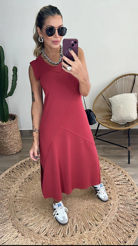 Vestido Gisele em moletinho com fenda e bolsos laterais