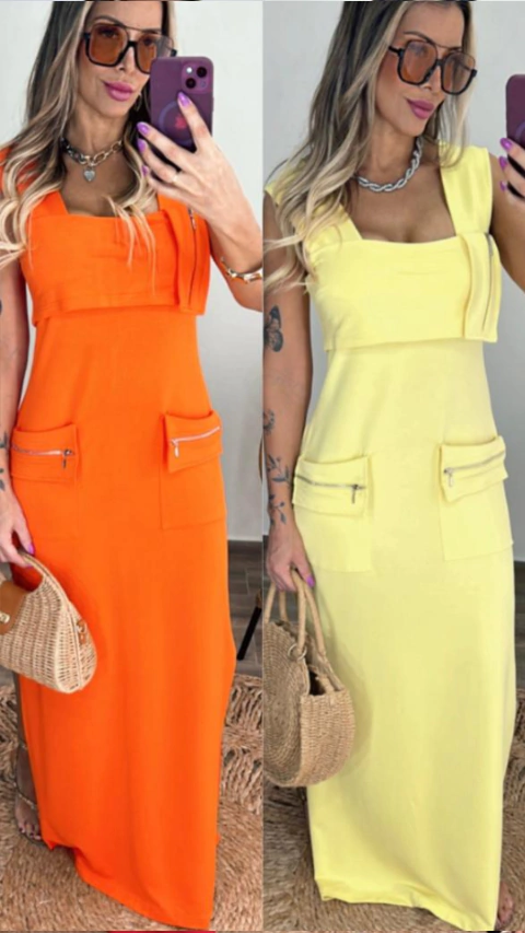 Vestido Serena tecido em moletinho , alças grossas e fendas nas laterais