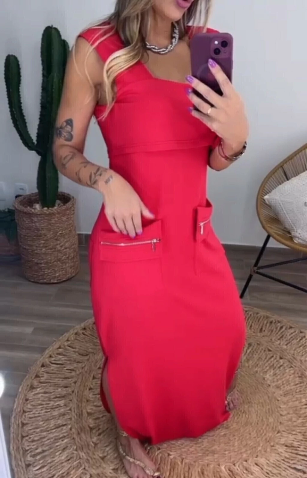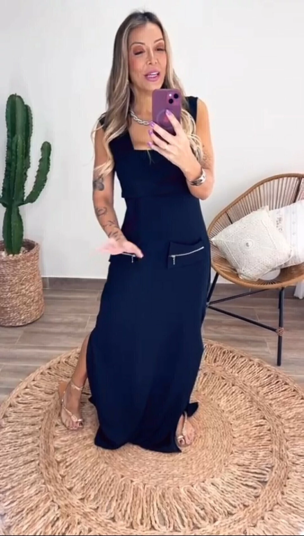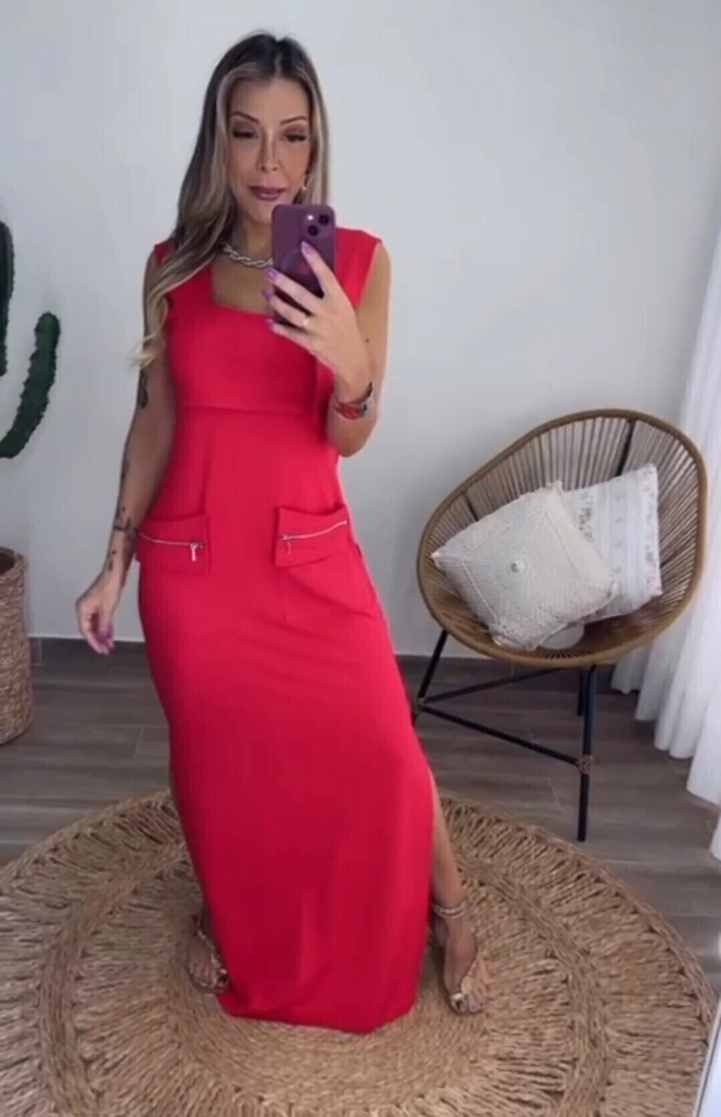 Vestido Gisele em moletinho com fenda e bolsos laterais